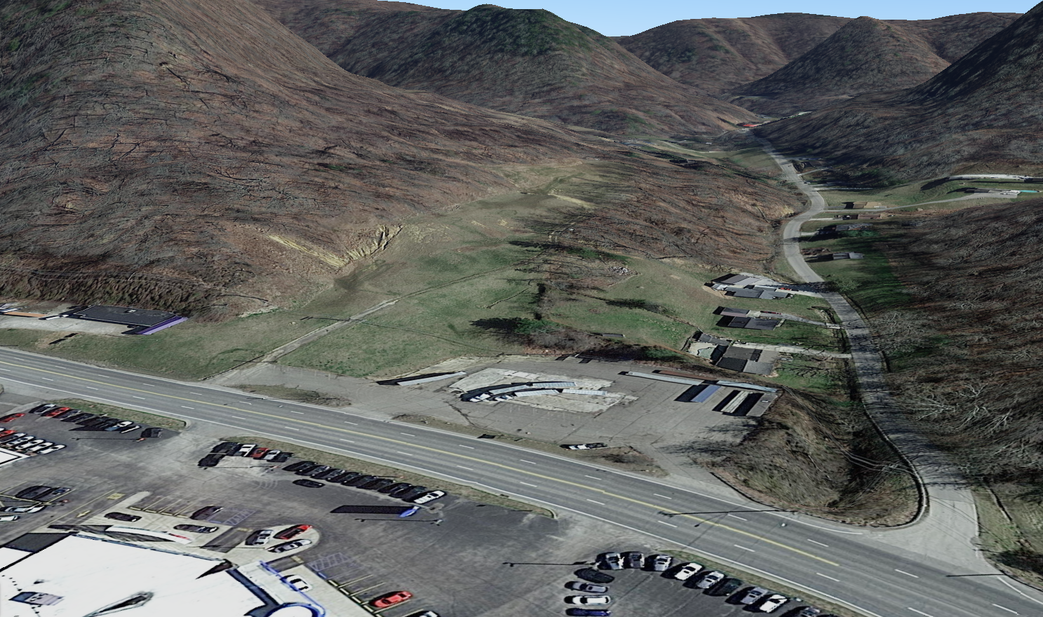An image from from the Homer Selby Collection of the location of the former Stone Pipe Inn, on US Highway 23 north of Portsmouth, Ohio, and screenshot from Google Earth to illustrate the location’s change over time.