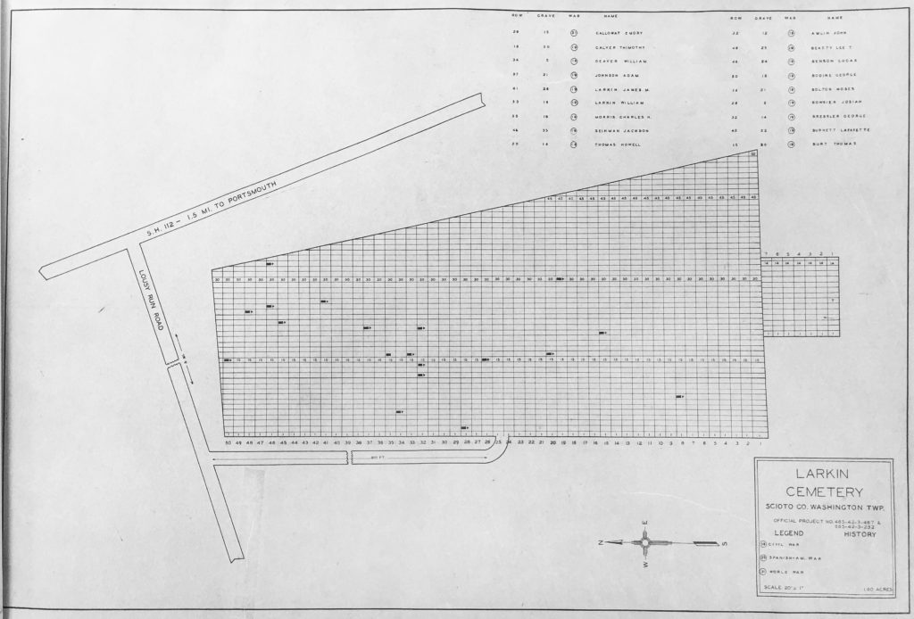 Larkin Cemetery: Washington Township, Scioto County, Ohio.Related Prev Vaughters Cemetery Veteran Burials Next Mount Joy United Presbyterian Cemetery Veteran Burials