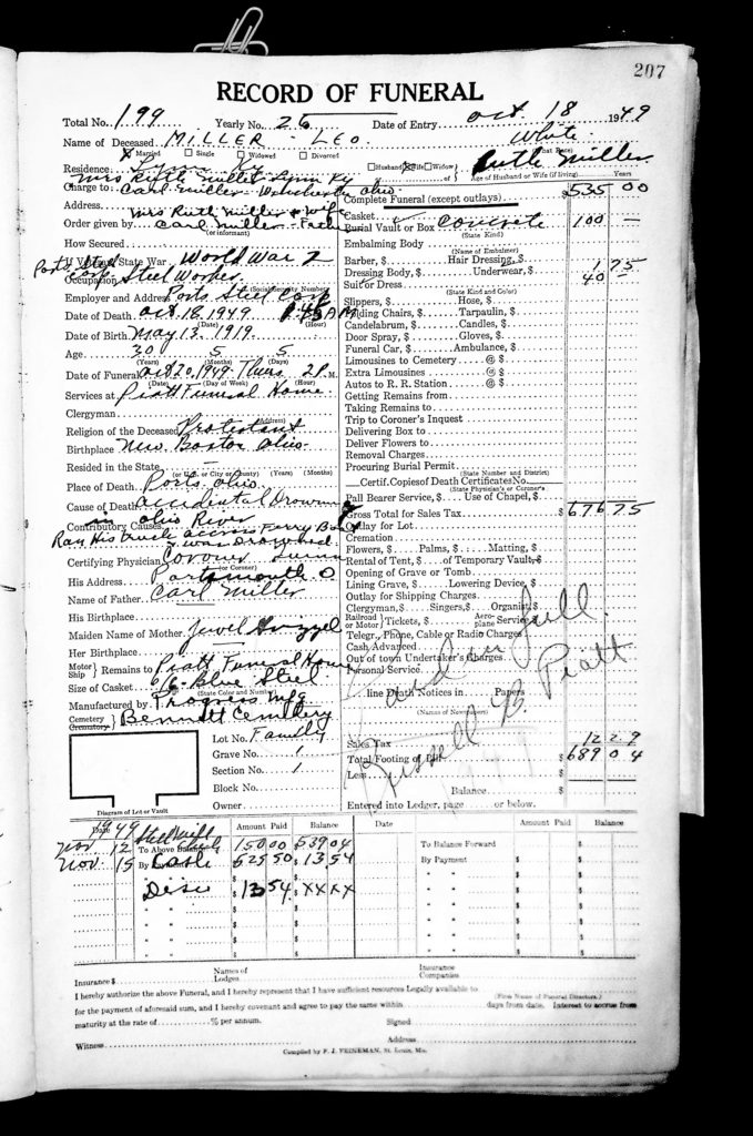 - “Ohio Deaths, 1908-1953,” database with images, FamilySearch (https://familysearch.org/ark:/61903/3:1:S3HT-DYFS-GQF?cc=1307272&wc=MD9F-PM3%3A287600001%2C294681201 : 21 May 2014), 1949 > 63201-66000 > image 1773 of 3057.