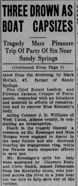 - Tragedy mars pleasure trip on ohio river. (1934, June 12). Portsmouth Times, pp. 1–2.