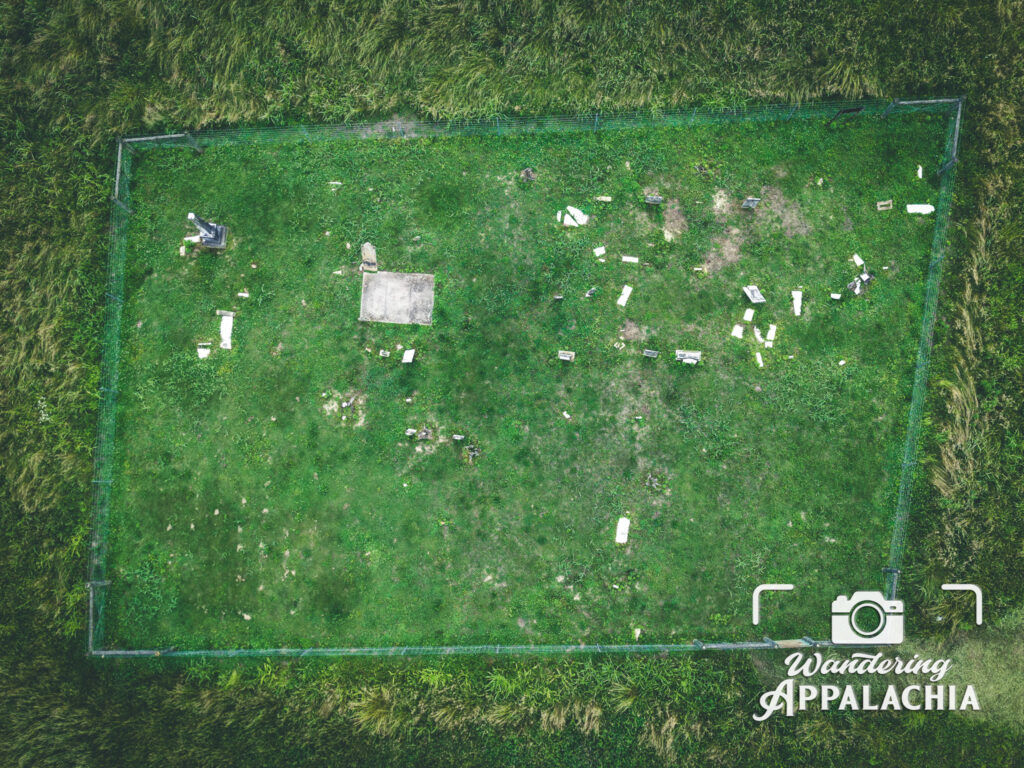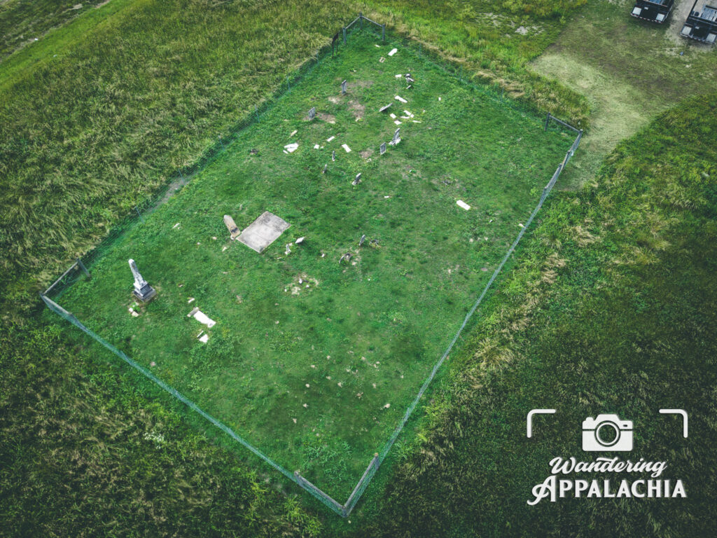 An aerial overview of the Owen McGlone Cemetery located in Carter County, Kentucky.